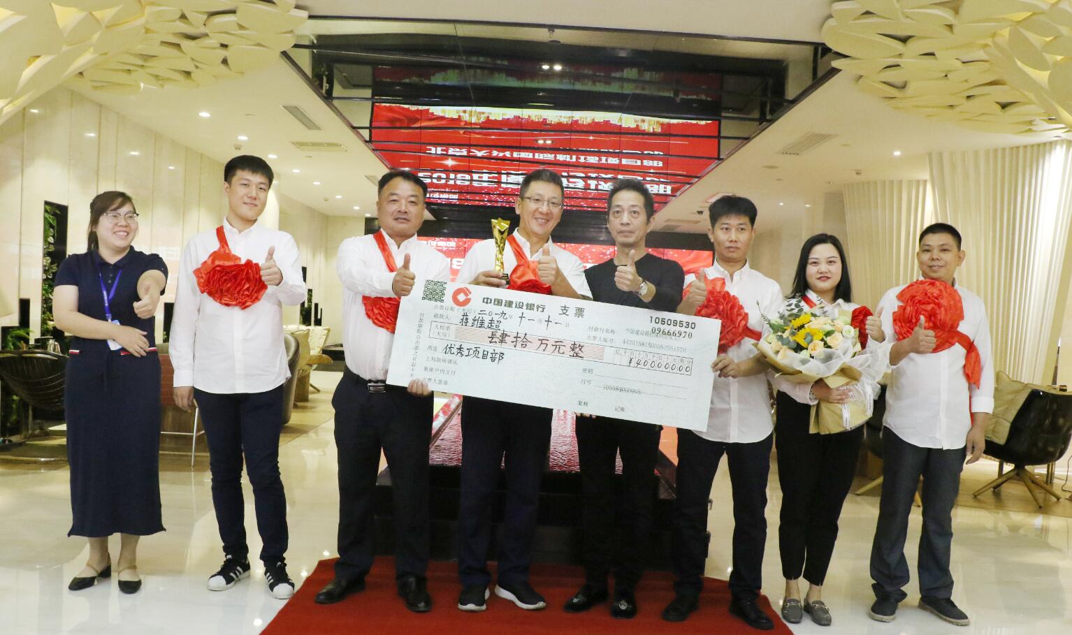 集團(tuán)副總裁、幕墻中心總經(jīng)理江東帶領(lǐng)團(tuán)隊,在柳州會展中心二期幕墻工程中憑借精湛的施工、高效的服務(wù),贏得客戶的高度認(rèn)可,成功拓展柳州會展中心二期精裝修工程,被授予優(yōu)秀成果獎。圖為黃河副董事長與獲獎?wù)吆嫌傲裟睢?/span>