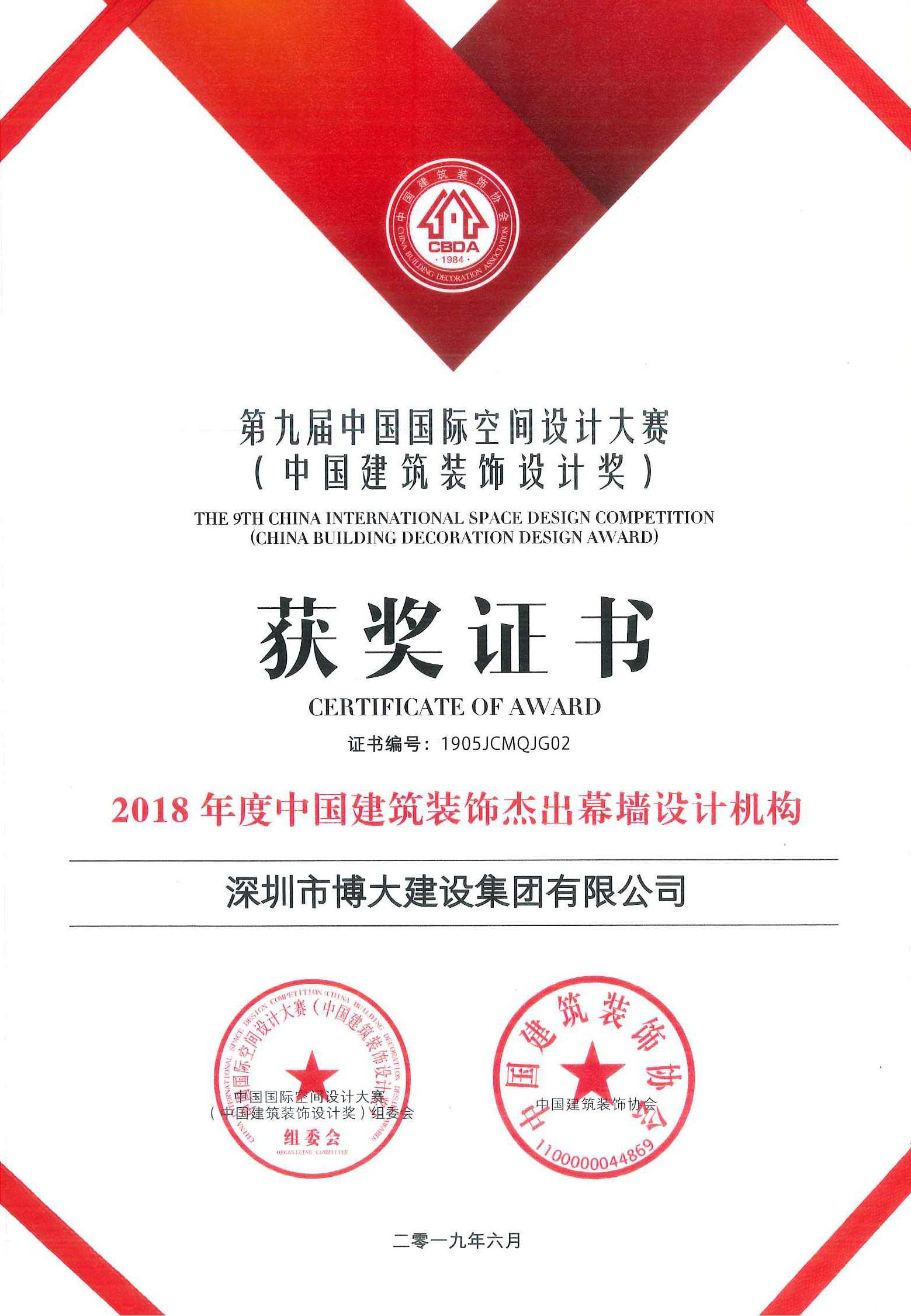 2018年度中國建筑裝飾杰出幕墻設計機構