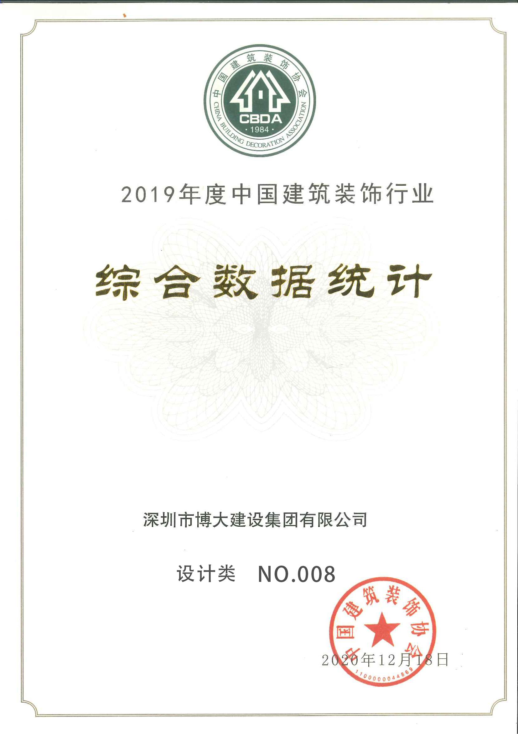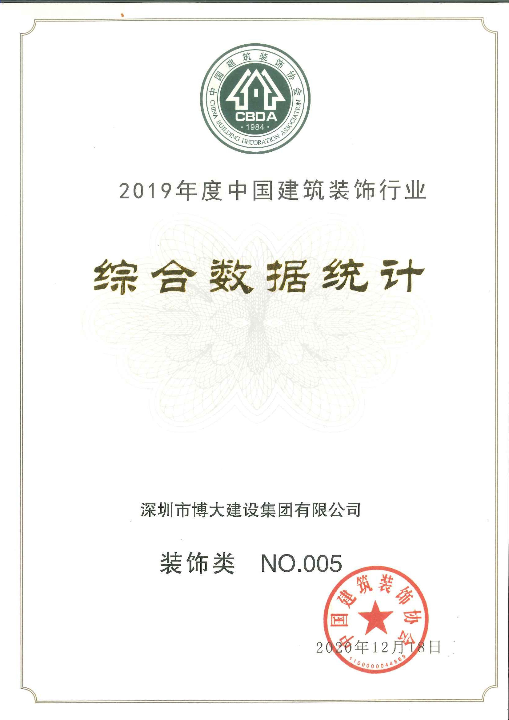 2019年行業(yè)全國排名裝飾類第五名