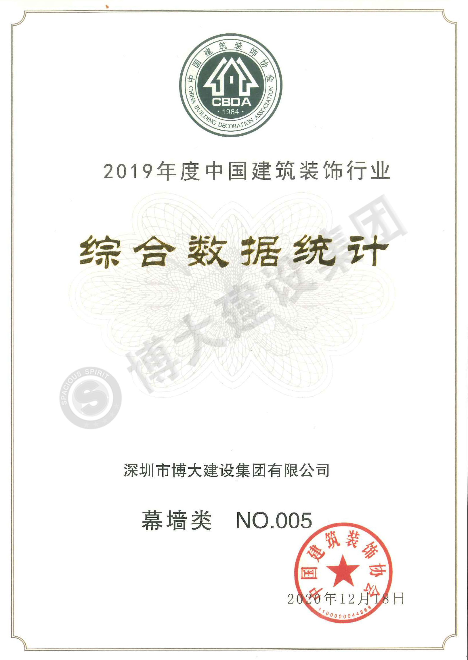 2019年行業(yè)全國排名幕墻類第五名