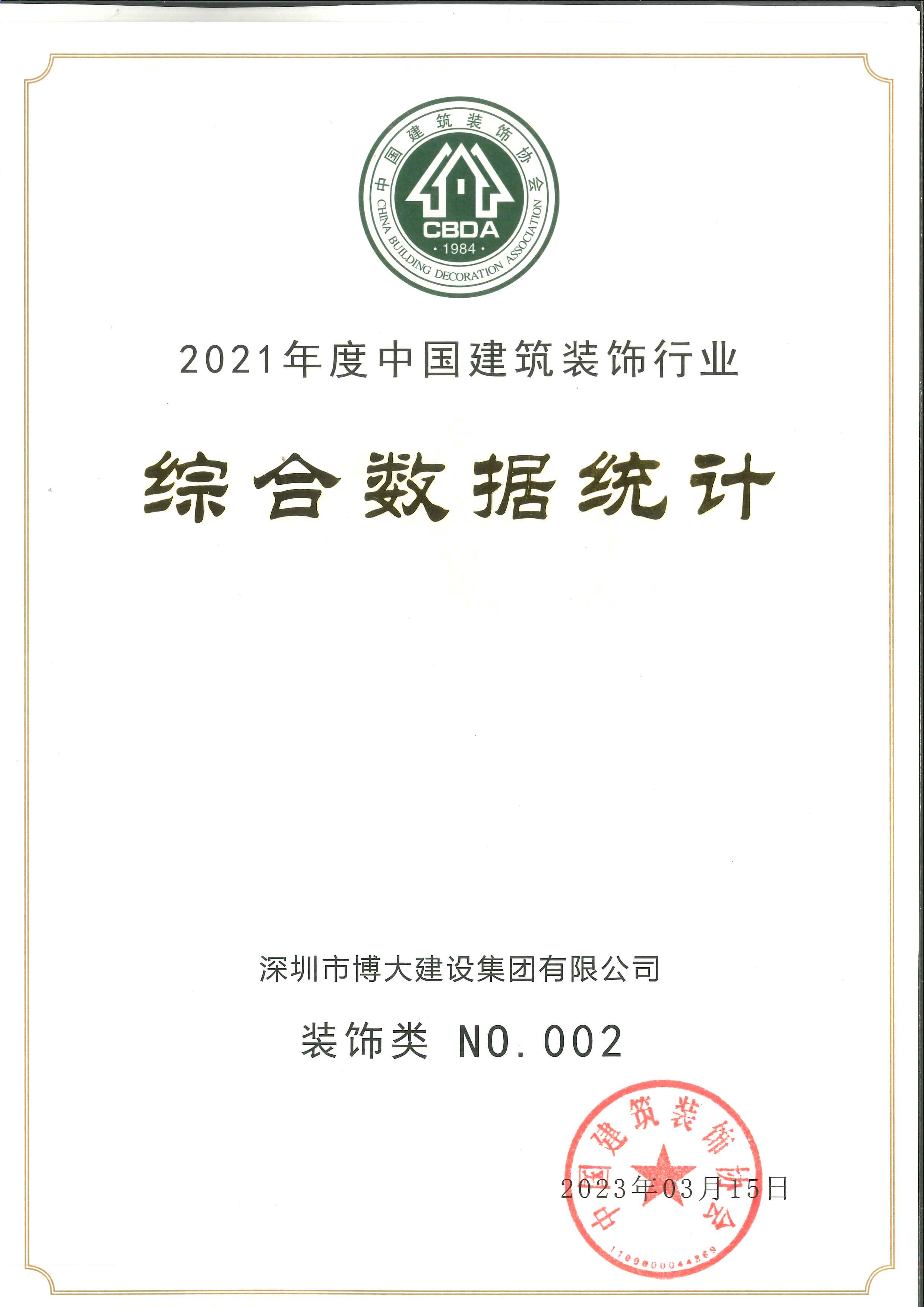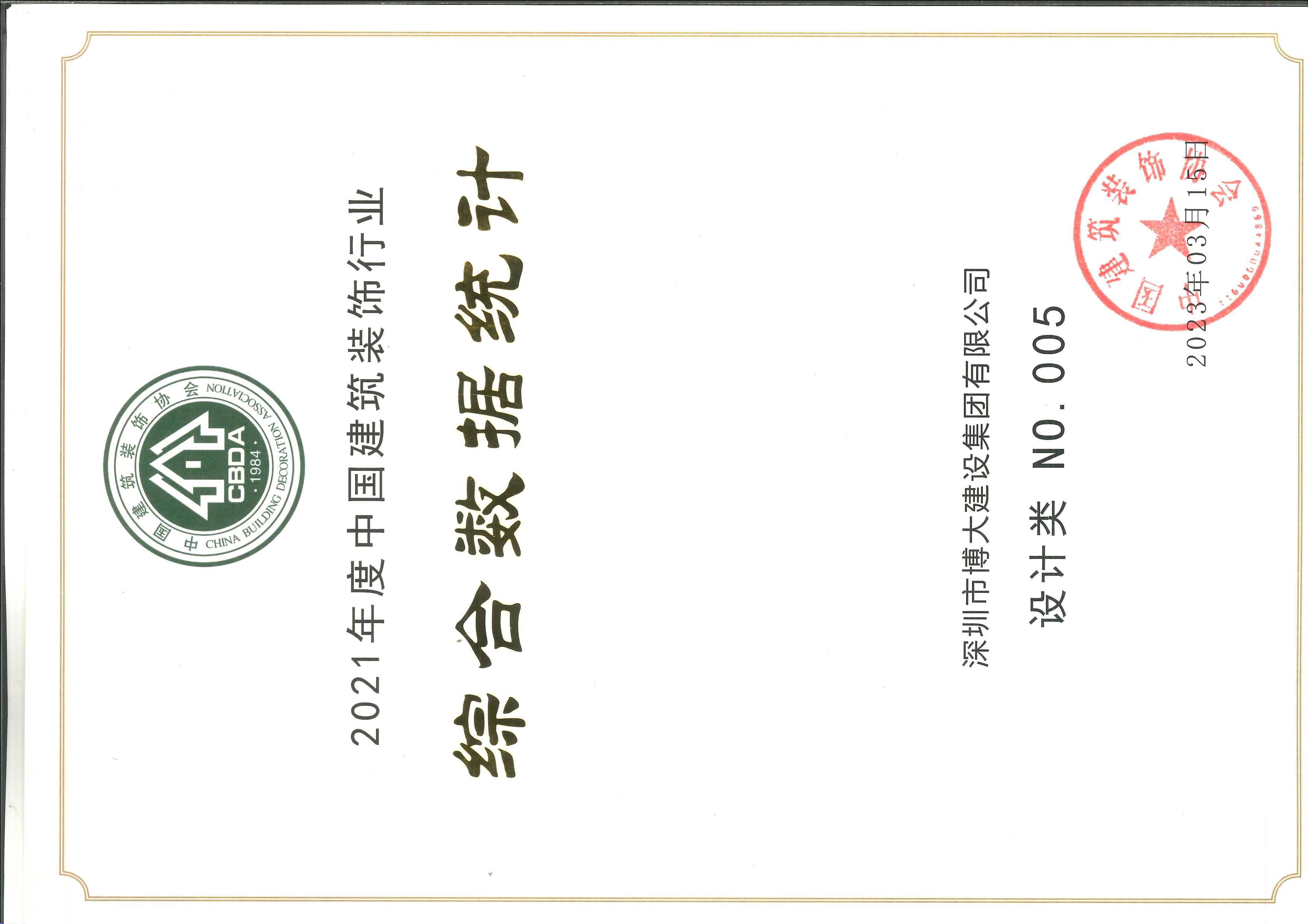 2021年度中國建筑裝飾行業(yè)百強裝飾類第二名