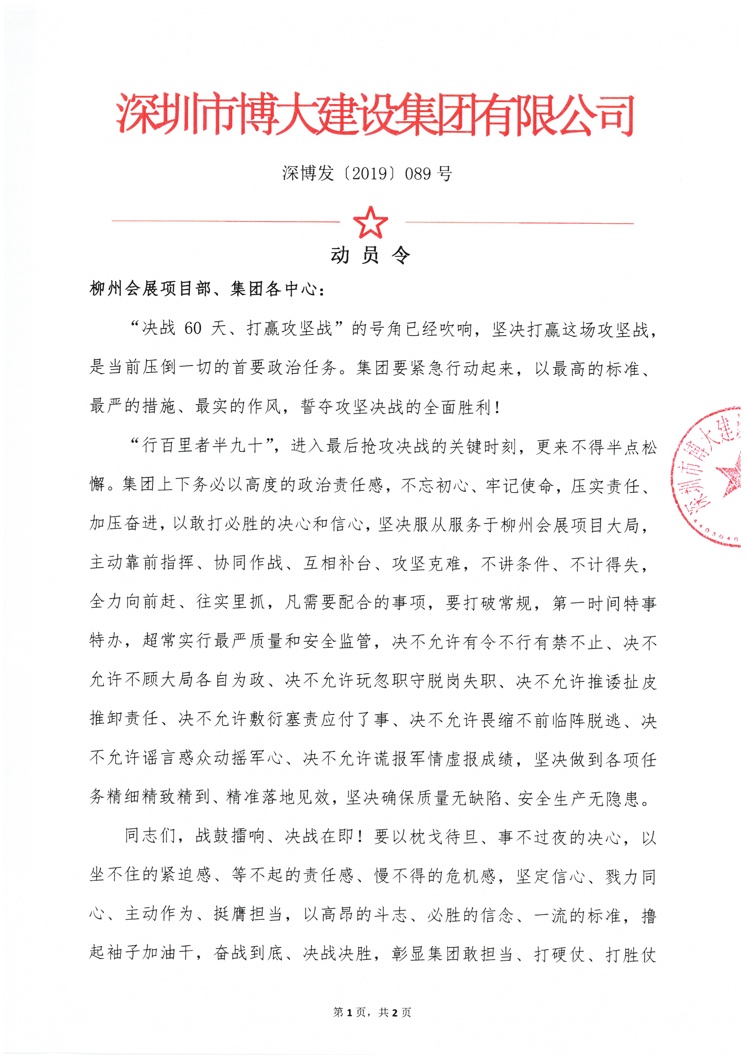 奮戰(zhàn)45天,博大鐵軍誓言打贏柳州會展項目攻堅戰(zhàn)——中國-東盟(柳州)工業(yè)品展示交易中心項目部舉行攻堅誓師大會
