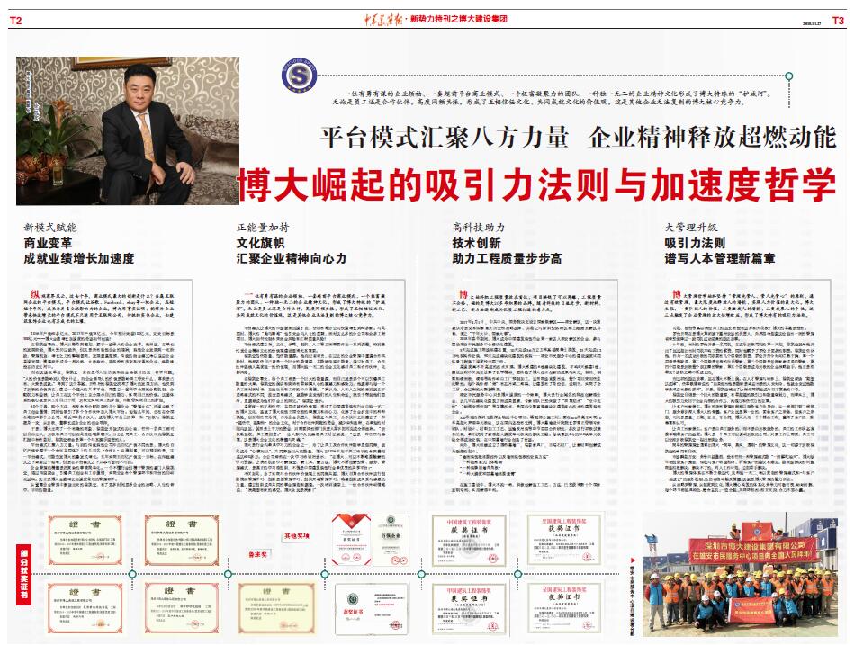 為更全面地介紹博大的發(fā)展經驗,《中華建筑報》第2982期以特刊的形式,通過四個版面詳細講述“博大崛起的吸引力法則與加速度哲學”。全文摘錄如下,以饗讀者。