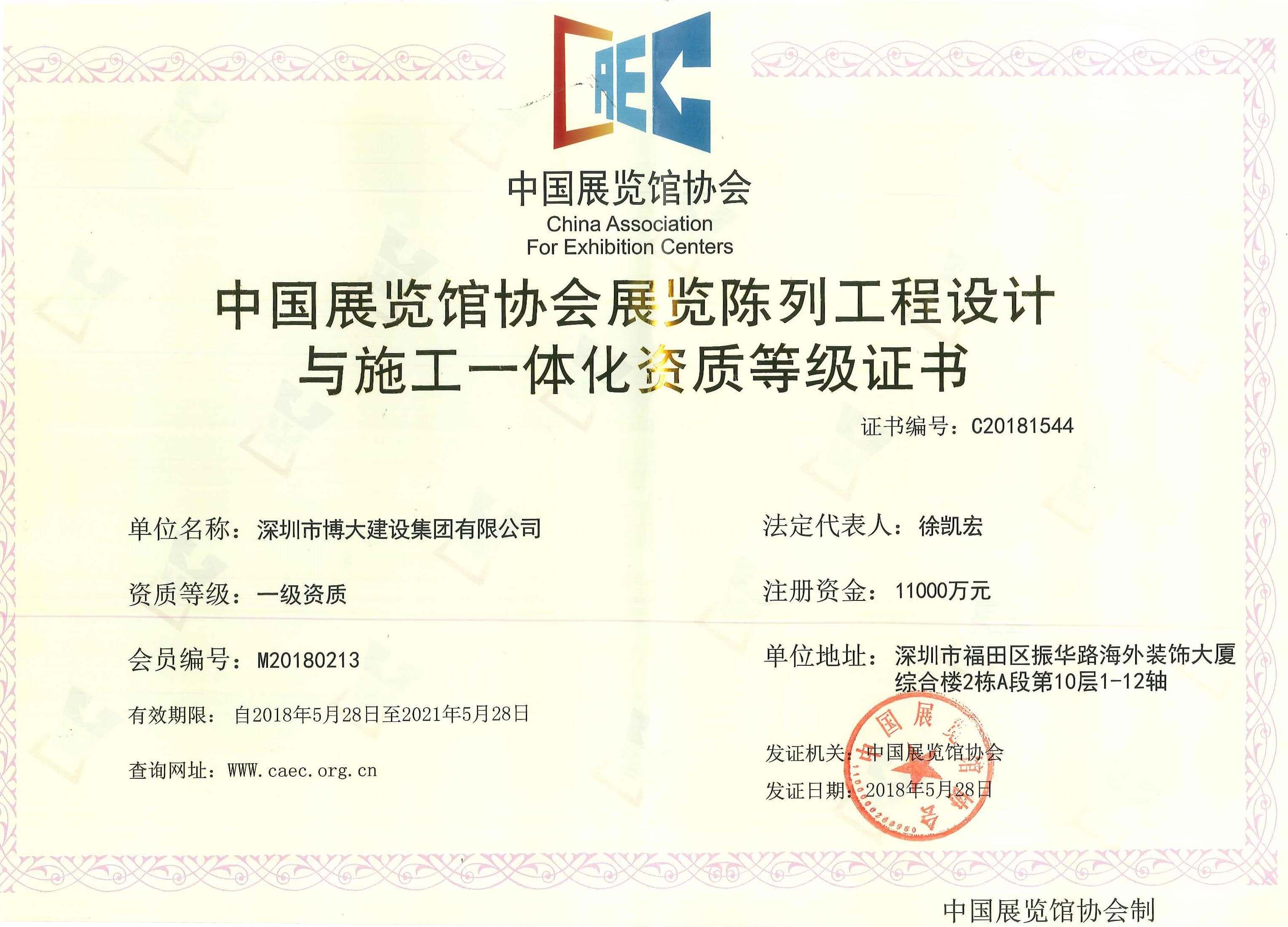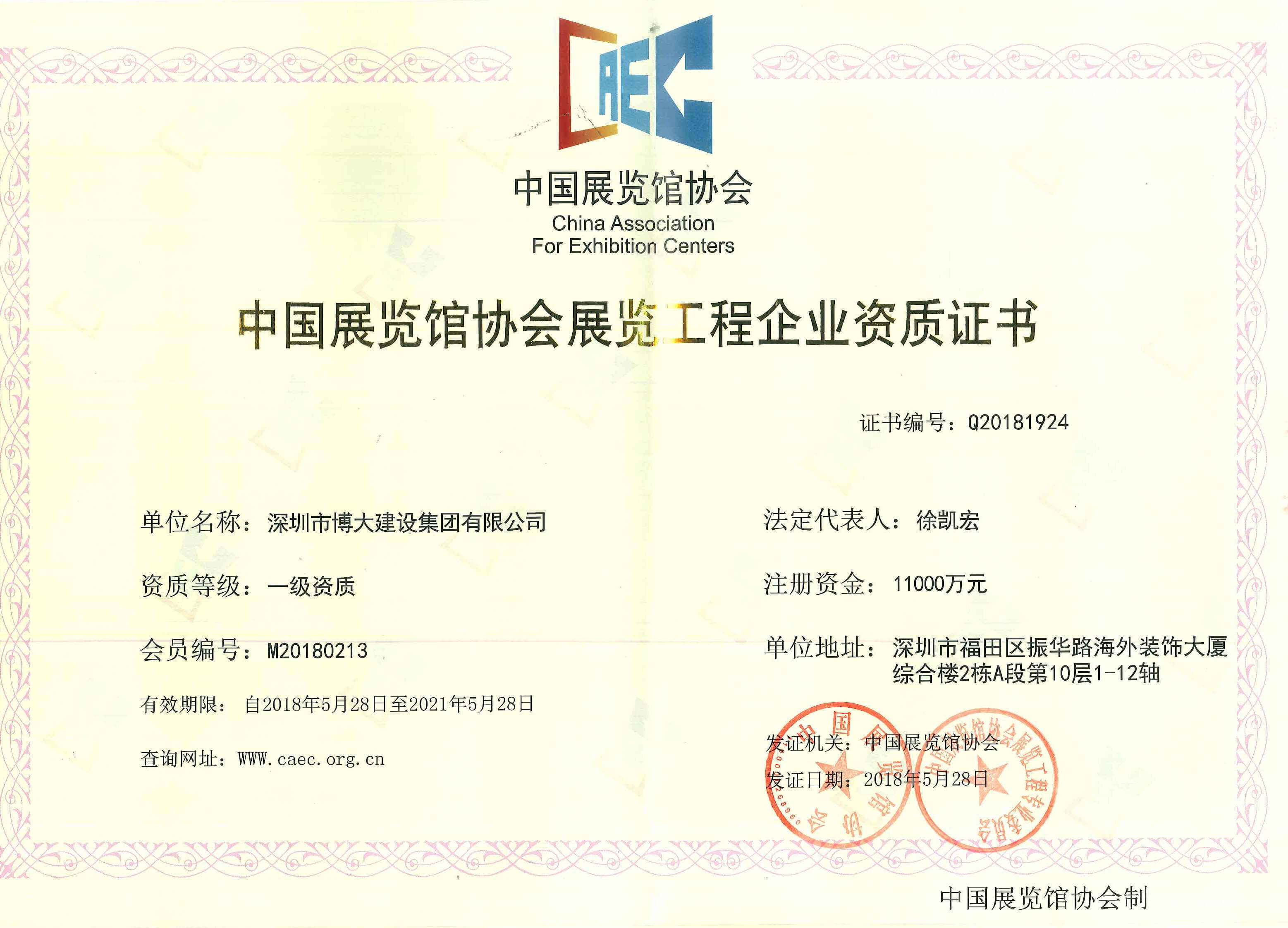 資質(zhì) | 博大獲得展覽工程兩個一級資質(zhì)