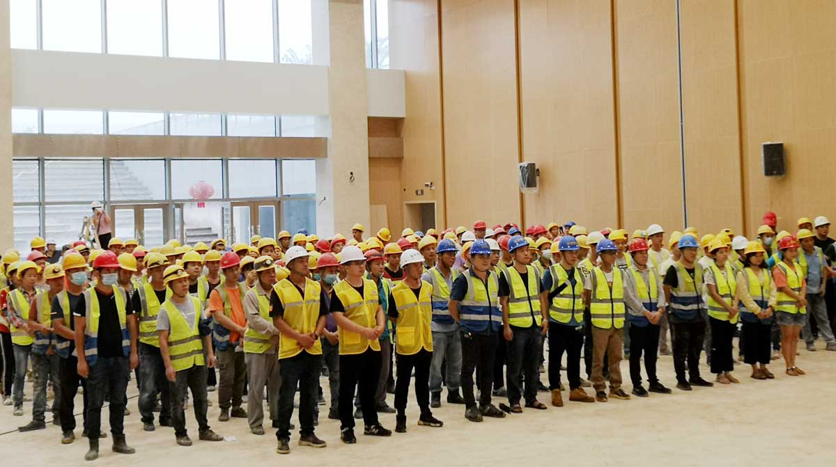 鏗鏘嘹亮的宣誓聲響徹在博大建設(shè)集團(tuán)柳州市民服務(wù)中心項(xiàng)目部。